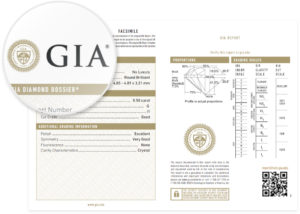 有不同的鑽石重量、等級、比例、鑽石報告書編號、證書雷射條碼和最重要的鑽石內部與外部特徵紀錄,